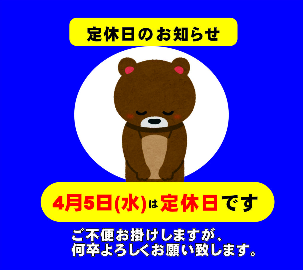 4月の定休日のお知らせ